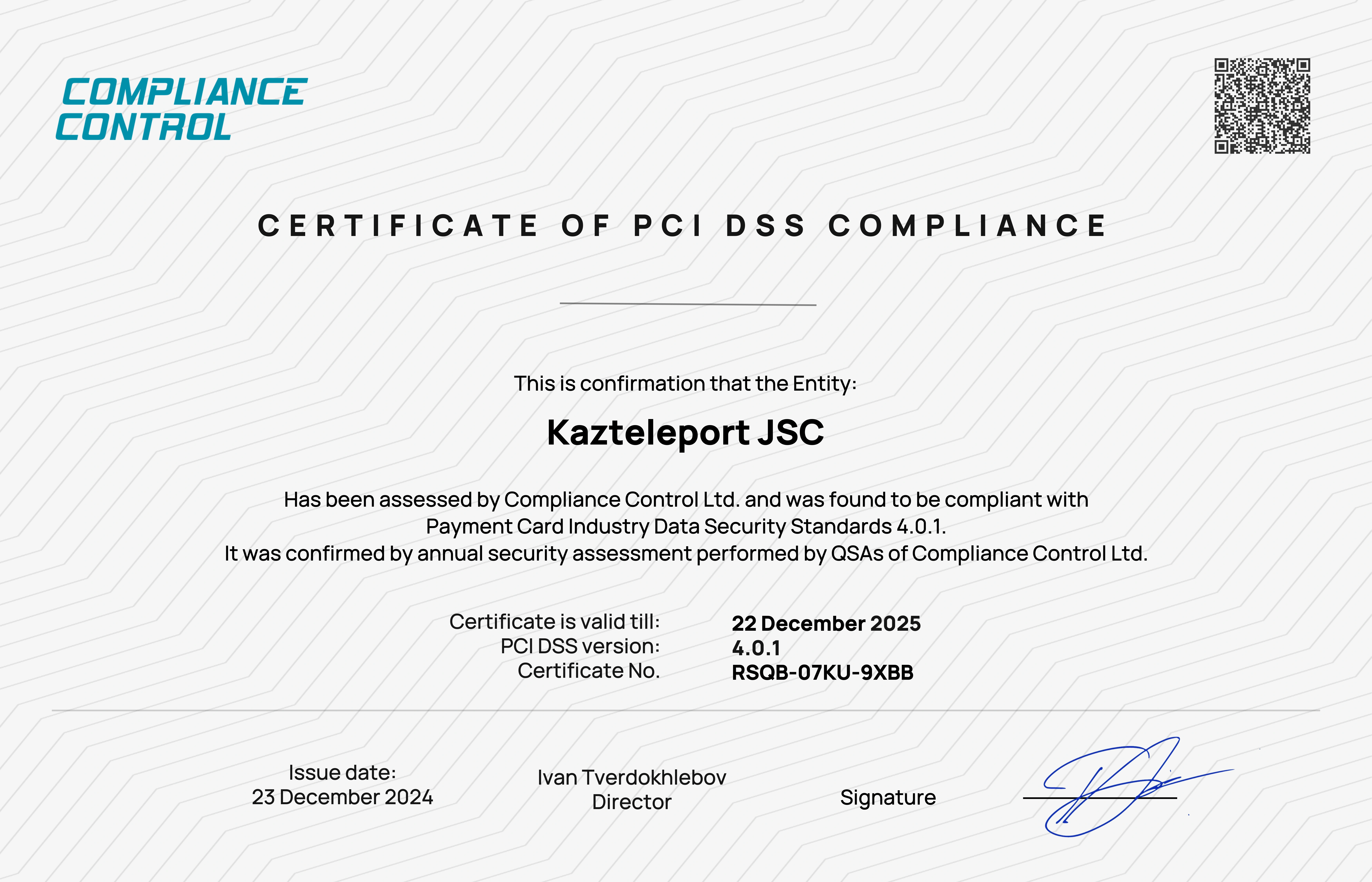 Халықаралық PCI DSS қауіпсіздік сертификатын және ақпаратты қорғау қызметтерін көрсетуге Қазақстан Республикасы Ұлттық қауіпсіздік комитетінің ОБСБ лицензиясын алу.